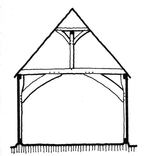 The crownGlossary Term postGlossary Term is a form of construction which creates a stable roof through bracing in several directions. A crownGlossary Term postGlossary Term standing centrally on a tie-beamGlossary Term supports and is braced to a longitudinal collar beam.