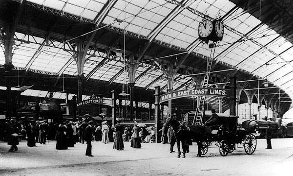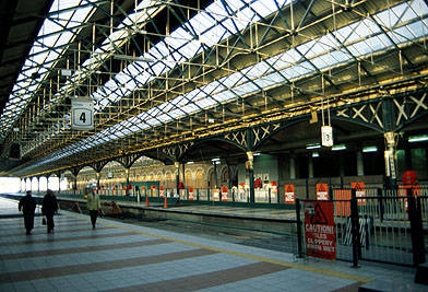 But by late Victorian times, these great roofs were giving way to cheaper, more flexible, but visually less dramatic systems involving repeated shorter spans, which were suitable for termini and through stations equally. These were also more efficient at bringing natural lightGlossary Term down to the concourse, which in stations of this period tend to be more spacious than those built in the railways' infancy. The example shown is the North Eastern Railway station at Tynemouth, Northumberland, a through station built in 1882.